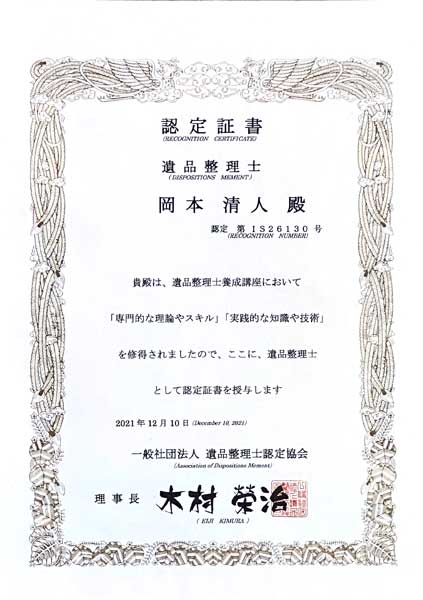 認定を得ておりますので、安心してご依頼頂けます