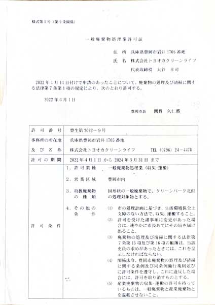 株式会社トヨオカクリーンライフでは豊岡市指定の